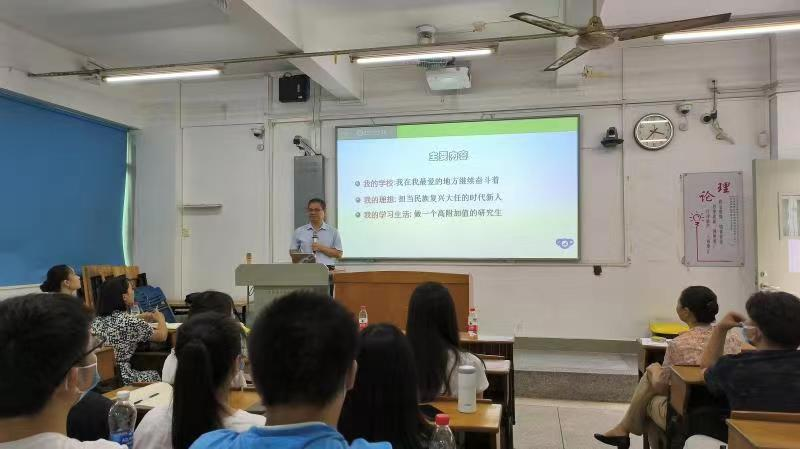 邓勿给研究生新生上了主题为“未来可见,未来已来”的开学第一堂思政课,他给同学们强调了五点:一要锻炼强健的体魄和培养坚强的意志;二要培养良好的心态和心理素质;三要构建合理的知识结构;四要培养适应社会的基本能力;五要积累职业需要的实践技能。最后,邓勿希望同学们成长为有理想、有本领、有担当的青年。