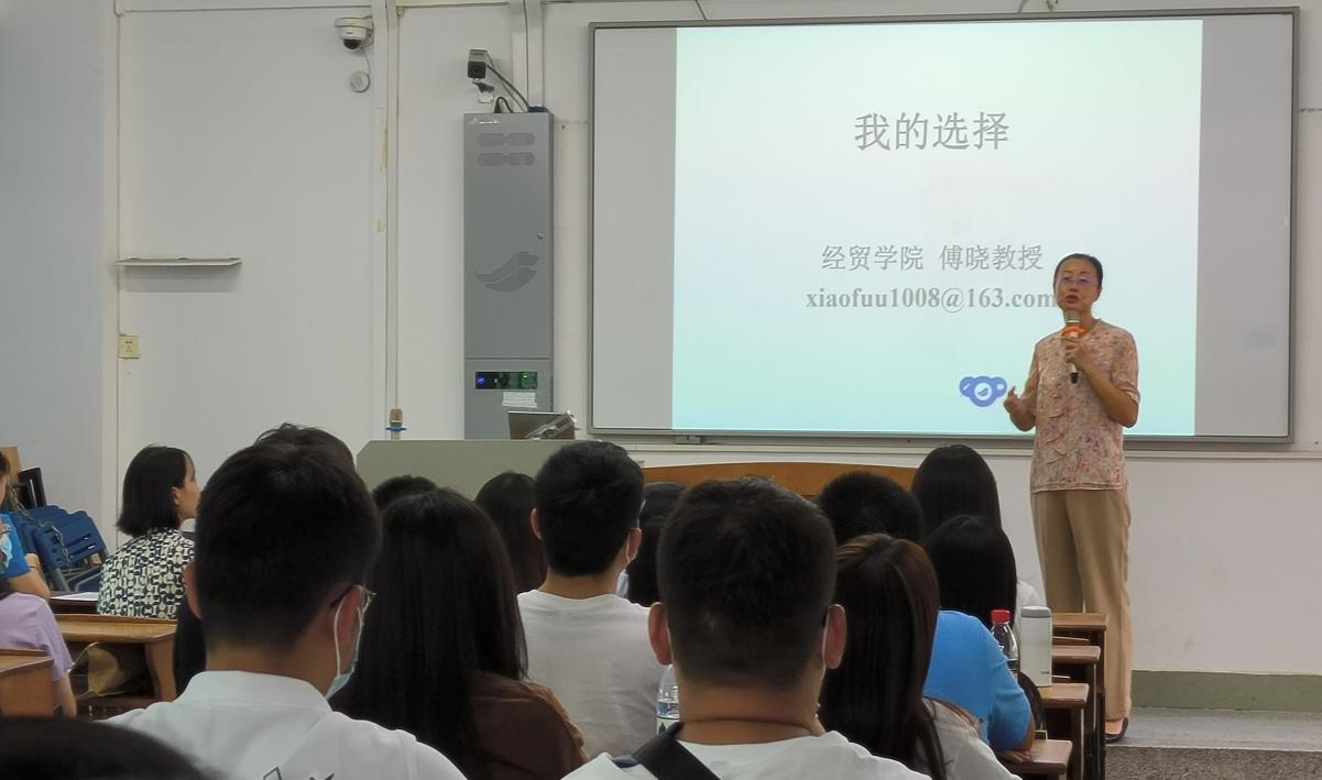 傅晓向研究生新生分享了个人学习生活感悟,建议同学们利用好读研期间的每一天,成为在思想上和经济上独立的人,开阔自己的视野。随后,傅晓介绍了经贸学院整体概况,并对全体研究生新生进行了详细的专业教育,结合农村发展领域的专业实际,从课程学习、管理、中期考核和开题报告、学位论文写作等研究生培养环节以及校规校纪各方面强调注意事项。最后,她介绍了经贸学院研究生导师队伍情况。