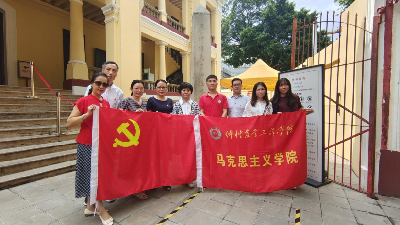 为深入开展学习贯彻习近平新时代中国特色社会主义思想主题教育,马克思主义学院教工第二党支部全体同志于5月25日前往廖仲恺先生牺牲处——越秀南路89号中华全国总工会旧址,开展“缅怀革命先烈,追寻红色印记”主题党日活动。