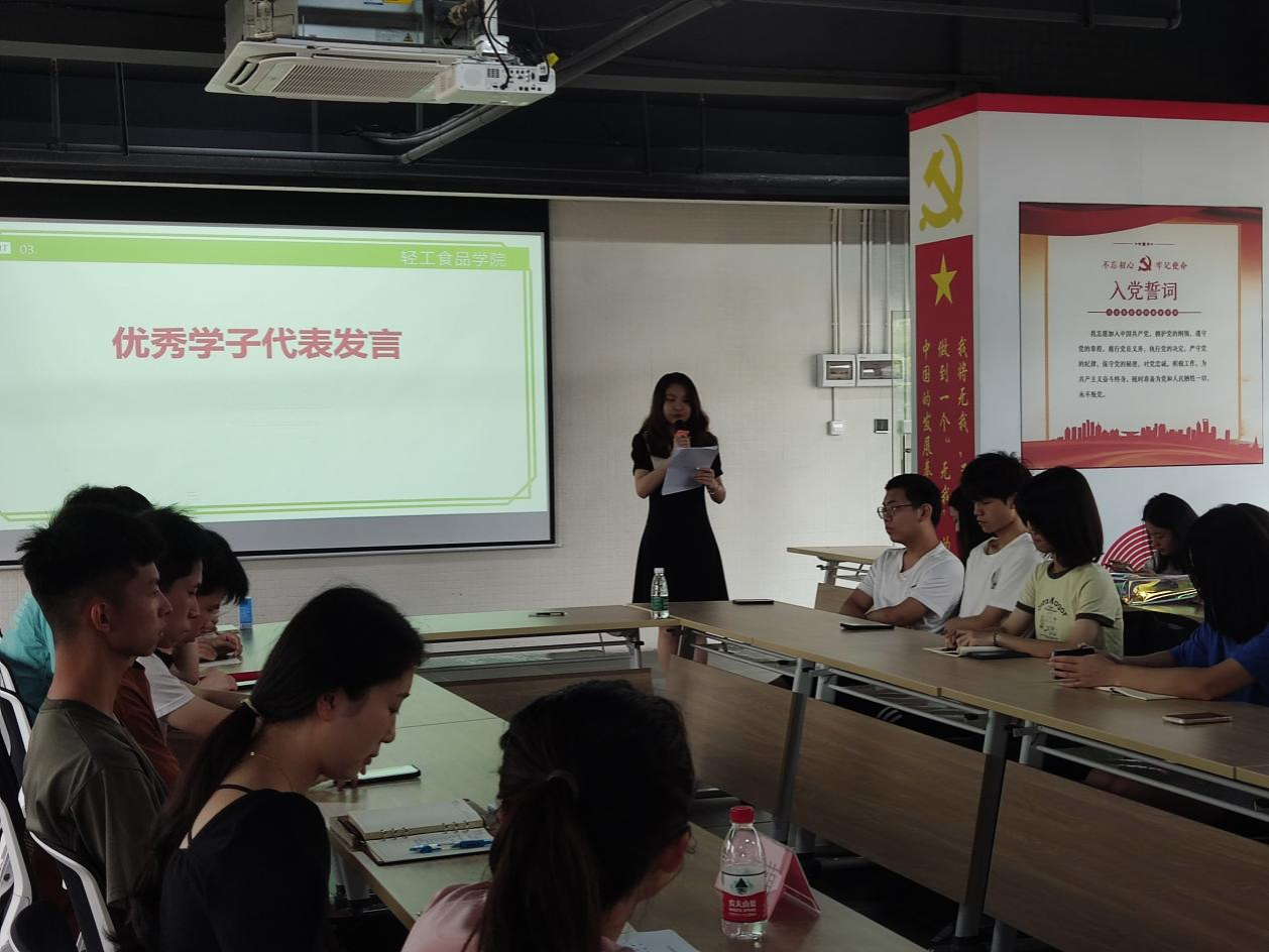 优秀学子代表食品201班文雯以“勇攀知识高峰,共建优良学风”为主题代表发言,以个人在学习中积累的经验与方法进行分享交流,为广大学子的学习之路提供一些启示和借鉴。倡议同学们以此次活动为契机,弘扬刻苦学习的精神,不负青春韶华,以知识浇灌岁月,以学习充实青春,以良好精神风貌彰显轻工学子的风采,用实际行动为学院优良学风创建贡献力量。