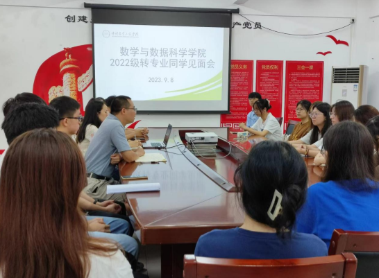 9月8日,数学与数据科学学院在刘楼313召开2022级转专业同学见面会,学院党委副书记余应坤、辅导员张素雅以及2022级转专业同学参加了会议。