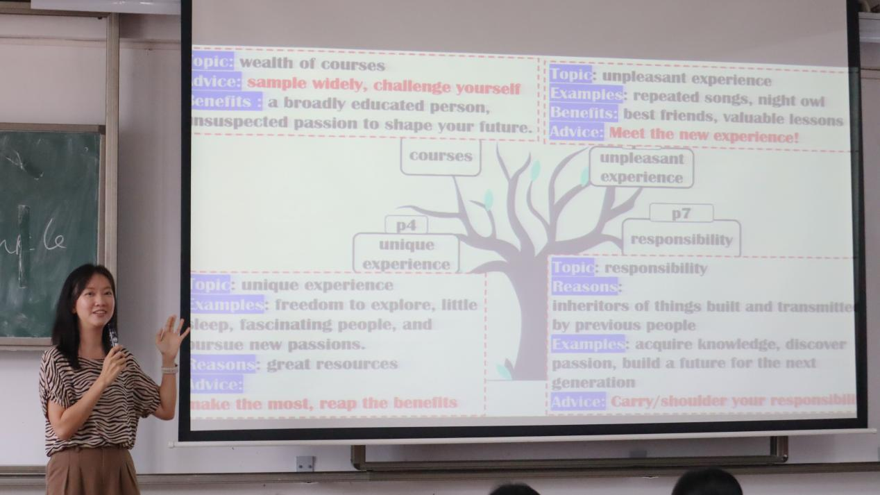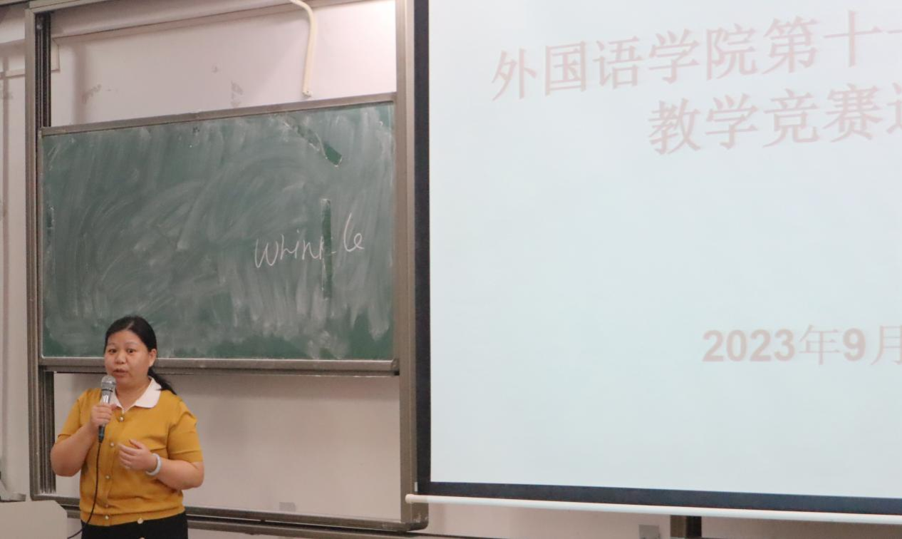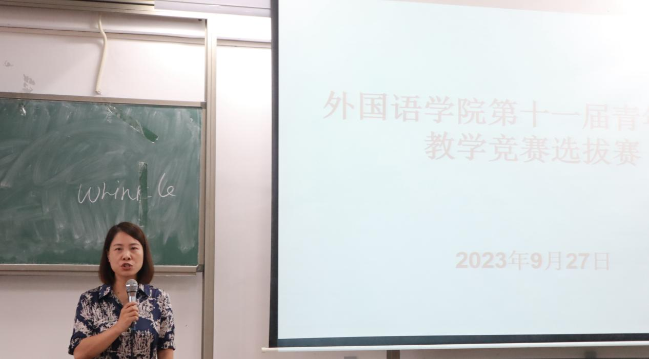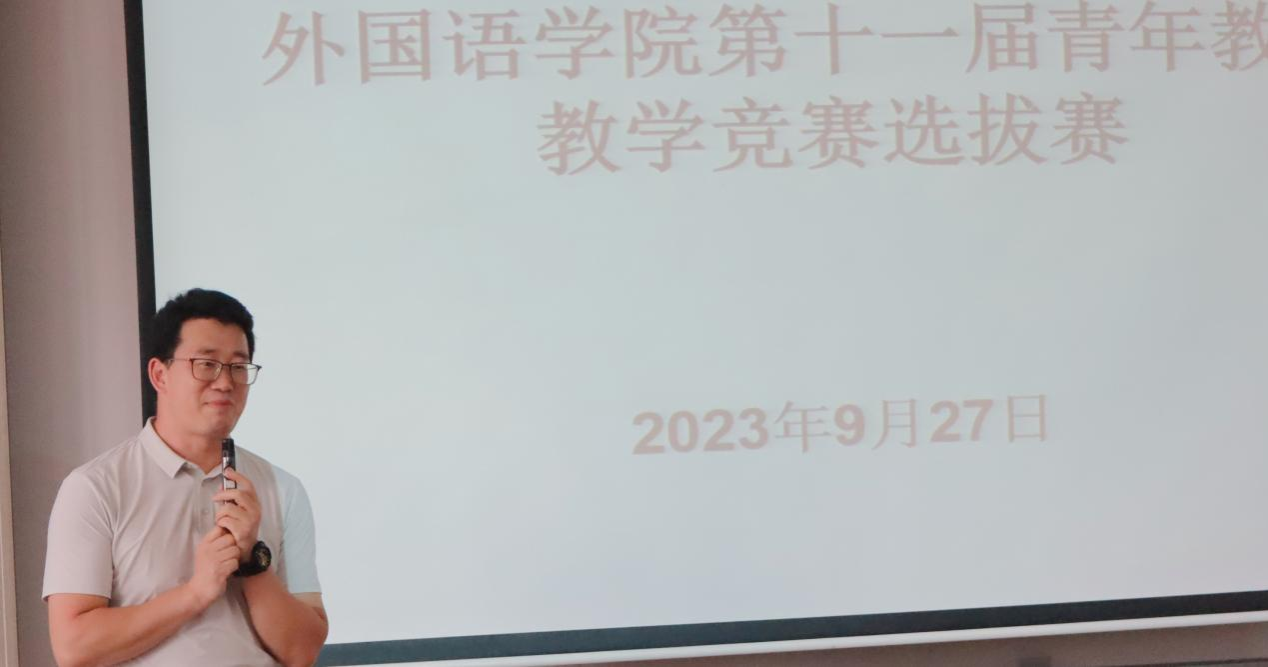 为加强师德师风建设,鼓励青年教师重视教学、钻研教学、创新教学,营造良好的教风和教研氛围,外国语学院于9月27日下午在白云校区D栋511教室举行了第十一届青年教师教学竞赛选拔赛。担任本次竞赛的评委有教务部部长周玲艳,外国语学院党委书记柴明勤、副院长(主持工作)贾琳琳、党委副书记周静、副院长王荣飞、英语系主任戚伟燕、大学英语部副主任丁烨、日语系副主任黄悦生以及商务英语系教师周佩虹。参加本次选拔赛的选手有王菁,石涛瑞,江楚池,张野冰,邵煜桐,郑楠,洪灵,章心怡,揣迪之共9名教师。