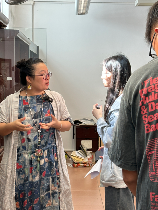 第三位接受采访的是广州市工艺美术大师、广州市轻工职业学校教师何雪莹。她简明扼要地向同学们介绍了釉上彩以及在广彩中的应用,并由工艺的工序出发,延伸到广彩自身的“中西交融”属性,以及在新时代的“新旧结合”特征。在她看来,传统工艺固然有需要恪守的地方,但不能因循守旧,如何让年轻人爱上非遗,重拾传统审美自信,是非遗匠人们需要重视的问题。她坦言,不惧“流量时代”的洗刷,反而希望年轻人的“流量”能够和传统技艺相结合,打造新的传播势能。