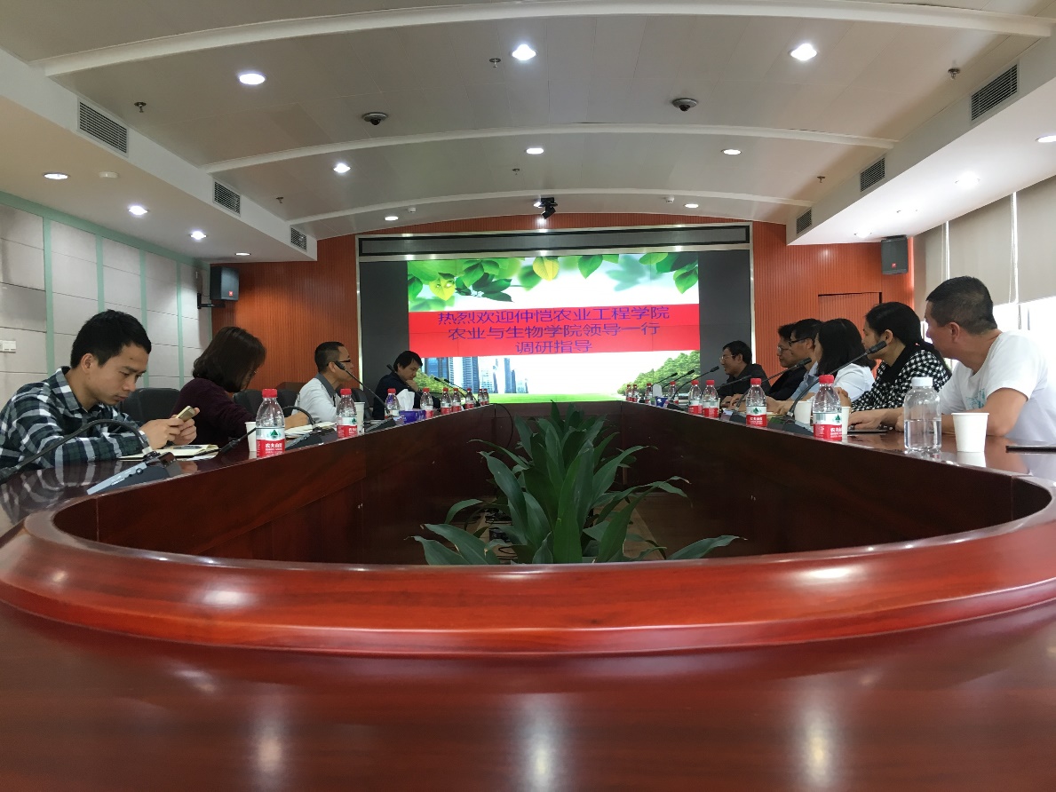 洽谈期间,深圳市环境监测中心站生态室主任马嵩就中心站发展历程及现状,工作职责、科研成果以及与科研院校合作等情况作了详细的介绍。据悉,我院黄玉源教授自2006年开始与深圳市环境监测中心站开展项目合作,带领我校本科生和研究生在基地参与科研和实习人数达900人次以上,并已有两个研究生在中心站就业。目前,双方已共同开展了10多个科研项目。在双方共同努力下,基地所在单位获得了“中国环境监测总站城市生态系统地面定位监测站”的资格。在2014年由国家环保部组织的国家环境保护科学观测研究站建设工程中,全国厅级以上城市监测中心站和环科所、中国院研究所及各省与生态、环境科学相关的研究所等单位均可申报的前提下,2017年1月,深圳市环境监测中心站脱颖而出,获得了第一批8个“国家环境保护科学观测研究站”建设平台单位之一。因此,该产学研基地具备了更好的学习、研究条件和平台。接着,农业与生物学院郑奕雄院长就我校以及农生院的基本情况做了介绍,并就双方进一步深度合作进行了商讨。陈丹雄书记对深圳市环境监测中心站为我院学生实践教学以及就业提供的大力支持和认可表示感谢,对产学研基地单位与我院的科研合作成效表示肯定。