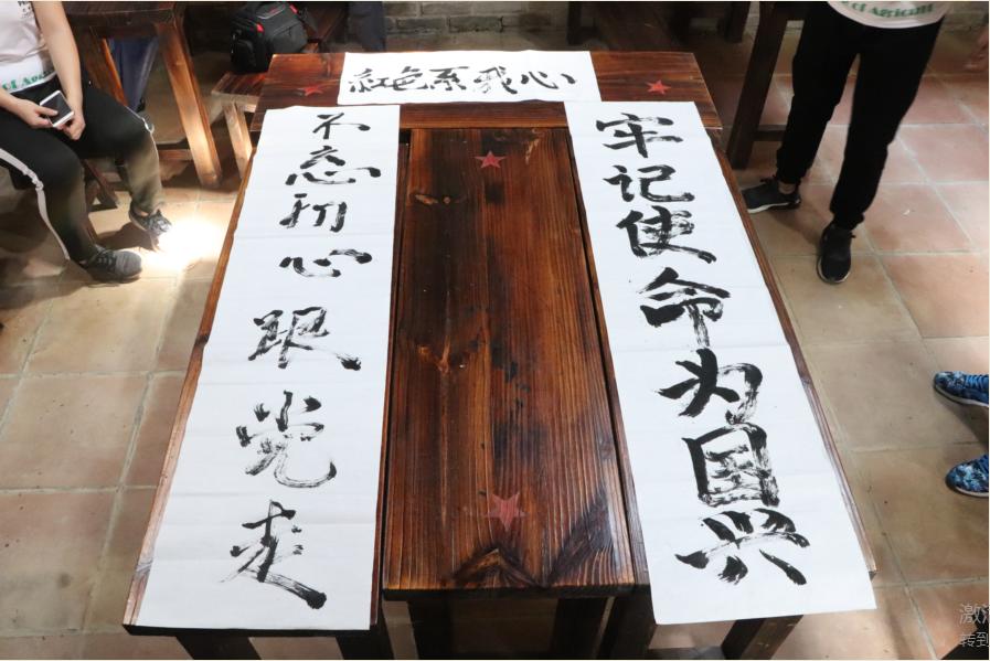 老虎石顶抗日烈士墓的横额刻着:“千古流芳”四个大字,两旁对联刻着“虎岗开墓地,牛嶂作朝山”。英烈的革命精神终将被人民铭记,被一代又一代的共产党员铭记。活动结束后,领导老师同学们都深有感触,在党教室中写下了一副对联以勉励在场的同学们知史莫忘耻,为本次活动画下了圆满句号。