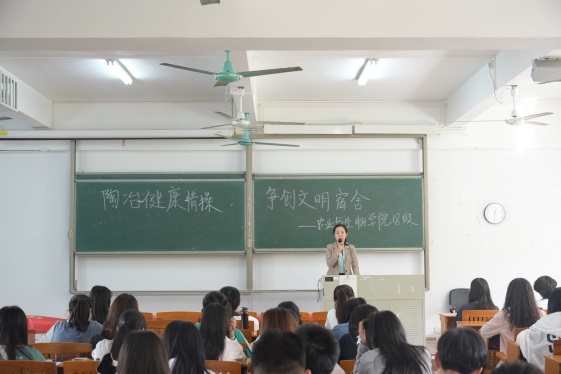 会上,周静静以自己的亲身经历和工作过程中遇到的励志寝室为例,阐述了一个文明和谐的宿舍环境对宿舍成员的成长成才具有的积极导向作用。同时,她指出,作为一宿之长,要“在其位,谋其职”,带头营造良好的宿舍氛围,为舍友的成长提供良好环境,带领全体室友做好自我教育和自我管理。她建议宿舍长们认真阅读学生手册中《文明宿舍管理办法》的相关规定并积极遵守,做到“从自己做起,对舍友负责”。周静静还提到,为了更好的创建文明宿舍,学院将组织18级的全体入党积极分子进行寝室排查,让我院的同学们做到不晚归、养成良好的作息习惯。