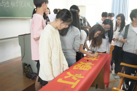 最后,所有宿舍长在写着“按时熄灯,拒绝晚归,从我做起”横幅上签名,并表示将不忘自己的职责,严格遵守学校《文明宿舍管理办法》的规定,勇于承担责任,带领宿舍成员创造一个健康文明的宿舍环境。