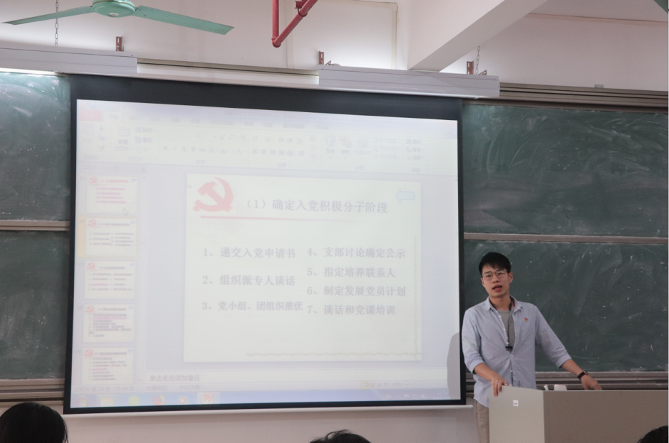 会议开始,先由农业与生物学院第二党支部代表蒋子锋同学发言。他希望在座各位入党积极分子端正自己的入党动机,提高政治站位,学好专业知识,学会做事,能经受住党组织的考验,早日成为一名合格的共产党员。