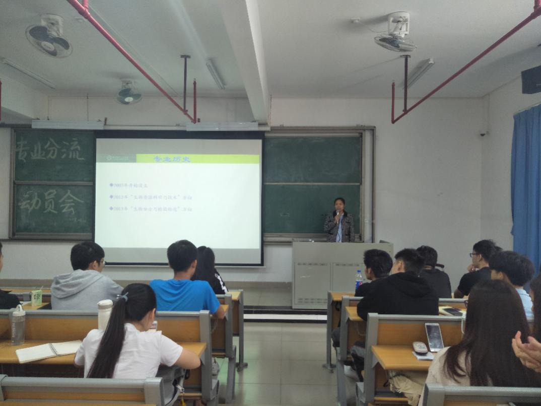 会议伊始,周玲艳对全体2017级生物科学类专业学生表示热烈欢迎,接着由冯飞老师为在场的同学介绍生物技术专业,他阐述了生物技术专业在第五第六学期的课程设置以及该专业毕业之后的工作前景,,然后介绍了往届优秀毕业生的就业及发展情况。