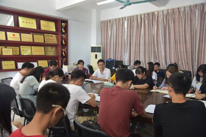 9月6日早上,农业与生物学院在刘宇新楼425室举行了2019级新生助理班主任培训会。我院党总支书记陈丹雄,副院长(主持工作)郑奕雄,副院长万小荣、周玲艳,辅导员周静静、苏登、孙晓芳出席了会议,2019级新生助理班主任参加了本次会议。会议由陈丹雄主持。
