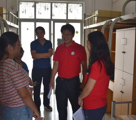 9月7日下午,农业与生物学院党总支书记陈丹雄,辅导员周静静以及部分学生干部一起走访了本院学生宿舍,排查学生宿舍中可能存在的安全隐患,并了解学生们的学习生活状况。