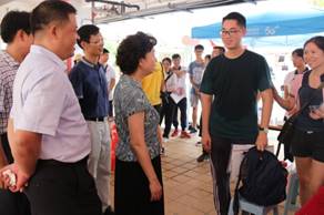 上午,校党委书记宋垚臻、校长程萍莅临我院迎新现场,在陈丹雄书记的陪同下,视察指导我院迎新工作。宋书记与程校长向工作人员和到校新生、家长表达了诚挚的问候。同时,他们听取了我院领导对新生报到工作开展情况的汇报,对我院迎新工作表示肯定。