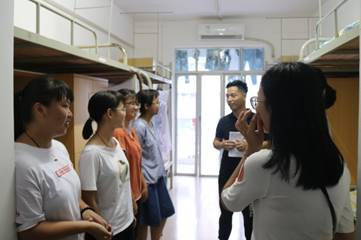 下午,我院辅导员苏登,新生班主任以及学生干部走访了新生宿舍,并向入住的新生表示热烈的欢迎。苏登和班主任老师与新生们就入住体验和宿舍关系进行亲切的交谈。他们提醒新生们注意天气变化,保重身体,同时还要时刻注意安全,遇事一定要寻求老师和同学的帮助。