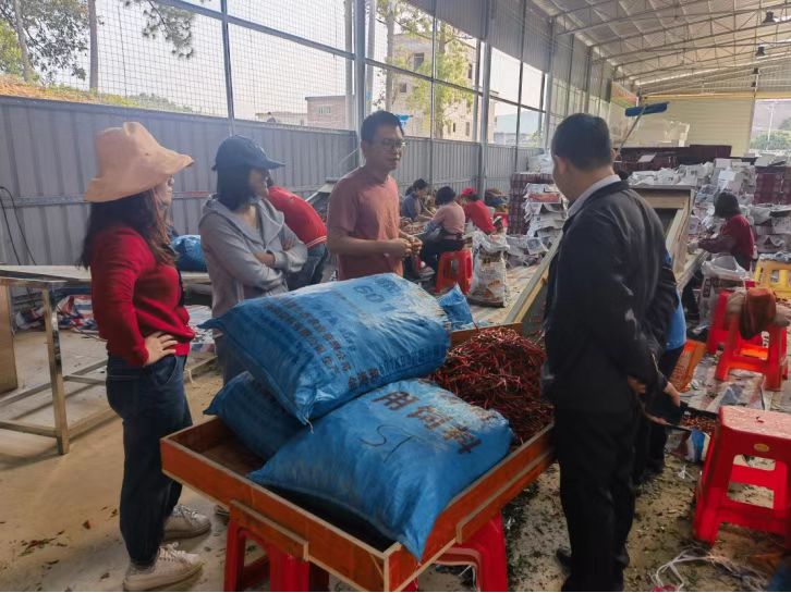 在罗定市永峰农业有限公司辣椒种植基地,科技特派员团队了解了辣椒种植规模、辣椒采后处理以及辣椒销售路径等情况,针对辣椒频发病害辣椒炭疽病给出了预防及防治意见。