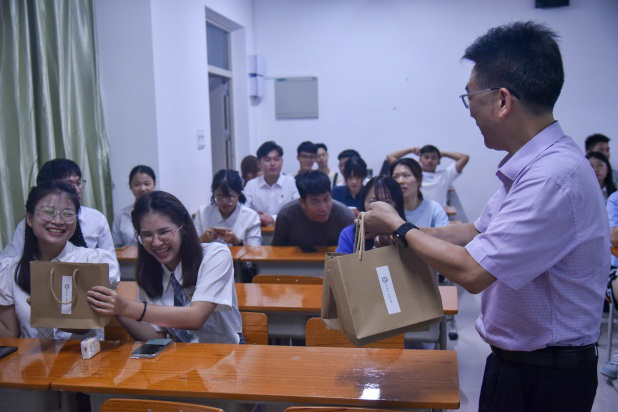 周超雄和喻国辉为全体党员送上了毕业礼物,期望各位毕业生党员未来成为各行各业的翘楚以及建设社会的主力军,为国家发展贡献自己的一份力量。