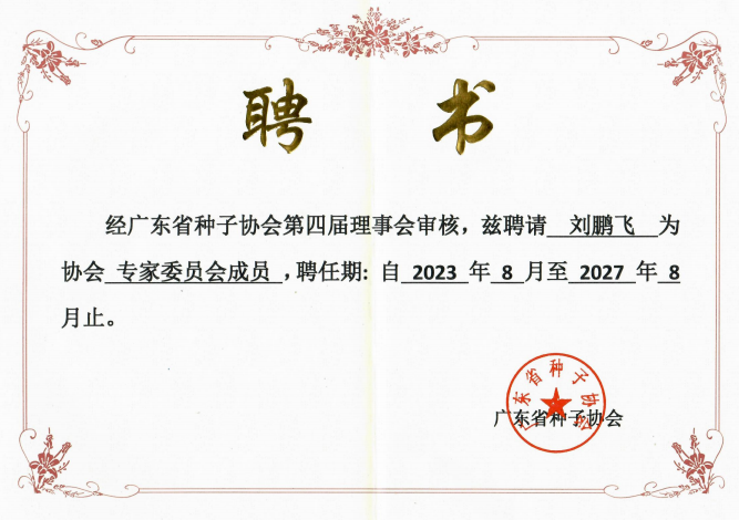 大会听取并表决通过了广东省种子协会第三届理事会工作报告以及修订后的章程,选举产生以广东省农业技术推广中心研究员林青山为会长的第四届理事会。广东省良种引进服务公司总经理郭少龙为执行会长,创世纪种业有限公司总裁黄涛等11人为副会长。会上,新一届理事会审议通过了法律顾问和专家委员会名单,我校刘鹏飞教授被聘选为广东省种子协会第一期专家委员会成员。