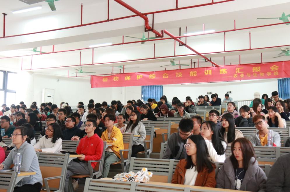 11月29日,农业与生物学院2017级植物保护综合技能训练汇报会在D2小礼堂举行,2017级植物保护专业学生在会上分享了各组的实践收获。学院植物保护专业系主任韩群鑫,专业老师张云霞、程东美,辅导员周静静、高结怡以及2018、2019级植物保护专业的学生参加了此次汇报会。