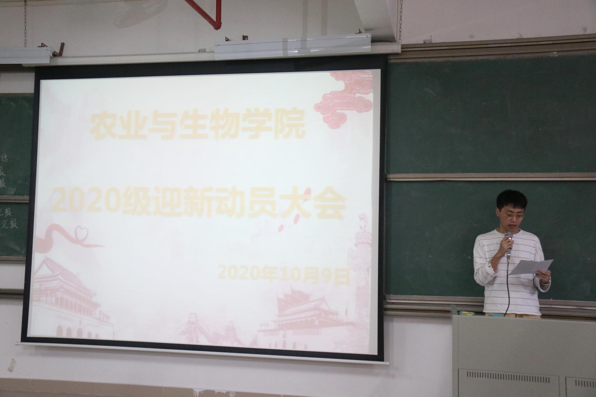 10月9日下午,农业与生物学院在综合教学楼310召开了农业与生物学院2020级迎新动员大会。农业与生物学院党总支副书记周超雄、辅导员苏登出席了本次会议。