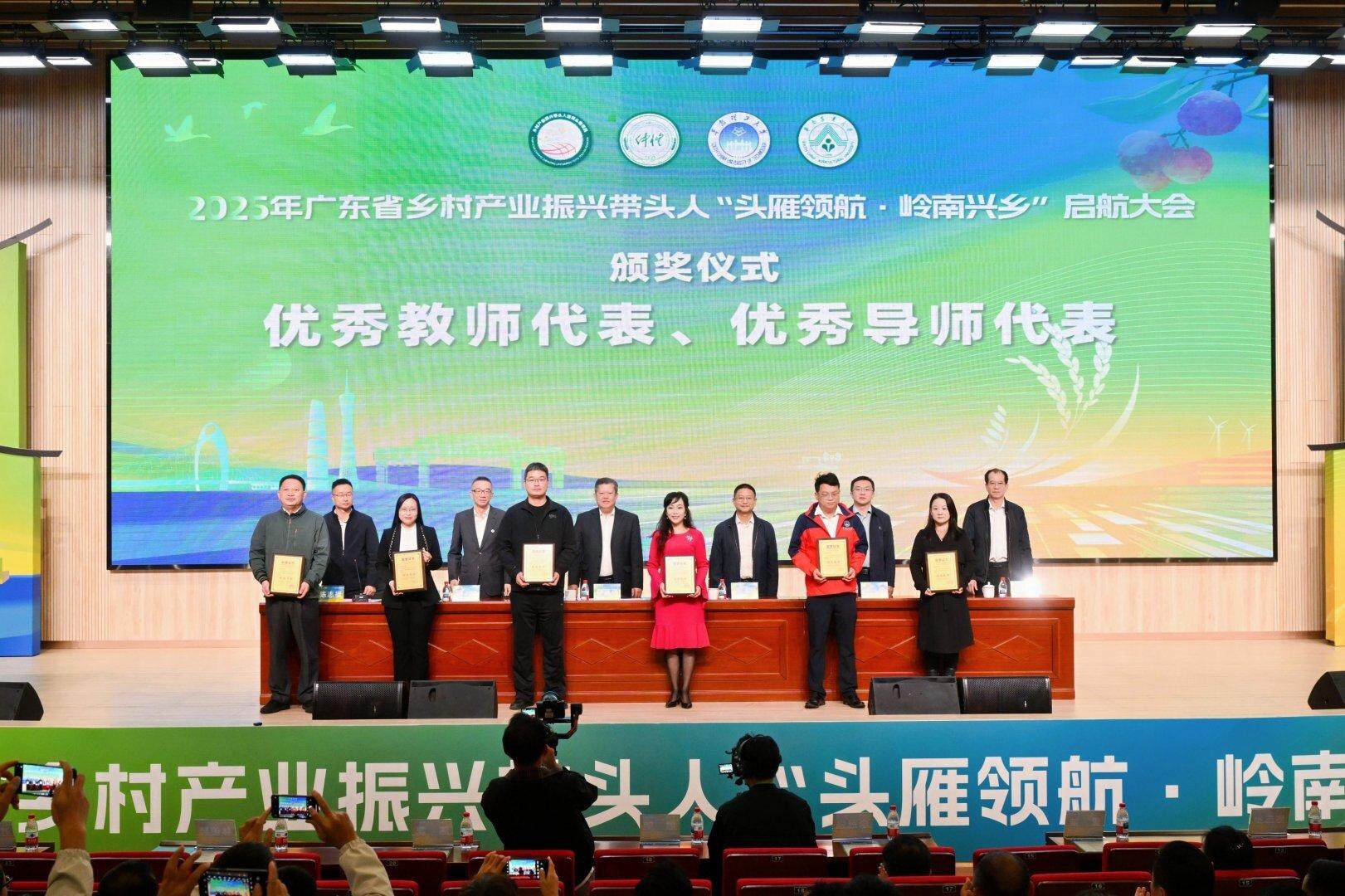 启动仪式上,一批在 2024 年培育工作中表现突出的优秀教师、导师及学员受到表彰。受邀登台领奖的优秀教师代表包括:仲恺农业工程学院蔡晓琳副教授、华南理工大学张智军教授、华南农业大学张蓓教授;优秀导师代表包括:仲恺农业工程学院刘同来副教授、华南理工大学王娟副研究员、华南农业大学刘吉平教授;优秀学员代表包括:广东鱼泽原养殖有限公司游晓瑜、广州市番禺区大石辉瑶化肥经营公司林志辉、揭西县大统农业发展有限公司方敏、广东京橘药业有限公司庞富、广东文丰农业发展有限公司黎成丰、广州雪玉茶业有限公司吴雪彩。
