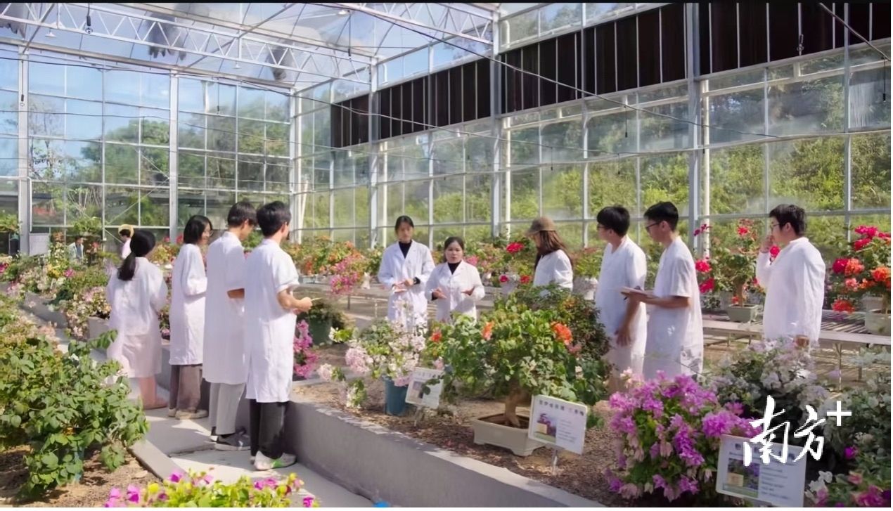 在花都,仲恺以全产业链融合发展机制为省重点建设项目马岭观花植物园增色添彩。校企双方联合收集200余份三角梅种质资源,共同选育三角梅新品种,创新制作三角梅盆花产品,组建农村科技特派员团队6支,推广面积2万亩,服务专业镇、产业园15个,培养大批花卉产业所需的高素质复合应用型人才。