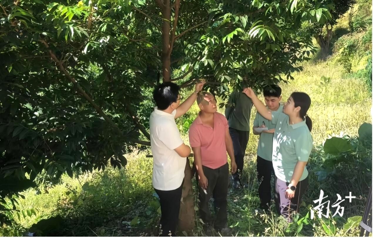 “优稀果树团队”成员宋雯佩(右一)在丰顺县留隍镇开展橄榄栽培技术指导。 受访者 供图