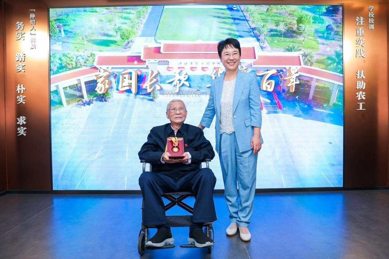 校史馆启用仪式现场,全体校领导为校史馆揭幕。年届106岁高龄的学校原党委副书记、副校长李岗同志,将自己的“中国人民抗日战争胜利80周年”纪念章和一批珍贵老照片慷慨捐赠给校史馆。翟雪梅代表学校接受捐赠并为李岗颁发捐赠荣誉证书。廖明为校史馆特聘咨询专家代表颁发聘书。