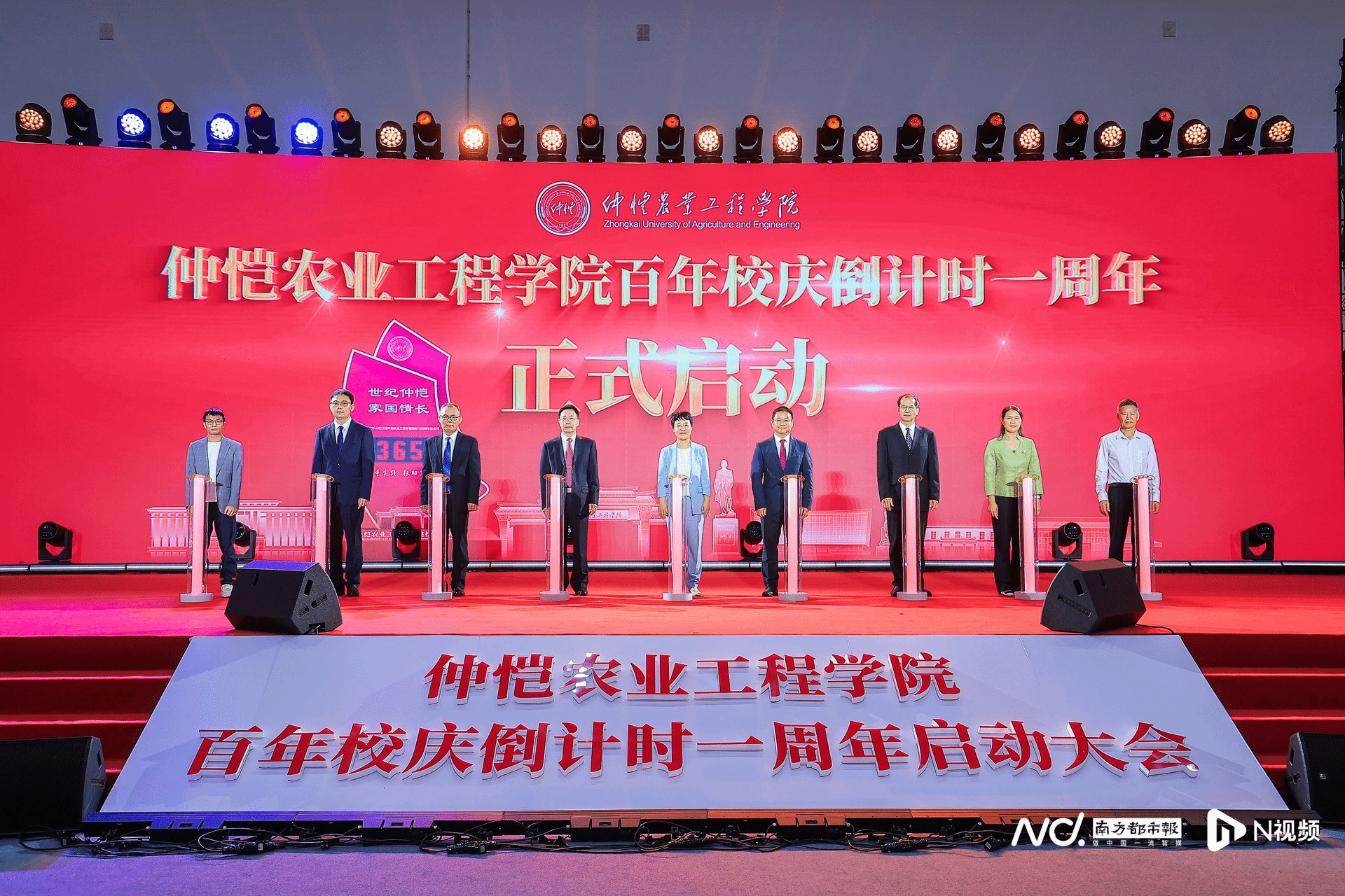 与会领导与校友代表共同触发倒计时启动装置,标志着仲恺农业工程学院百年校庆正式进入一周年倒计时。