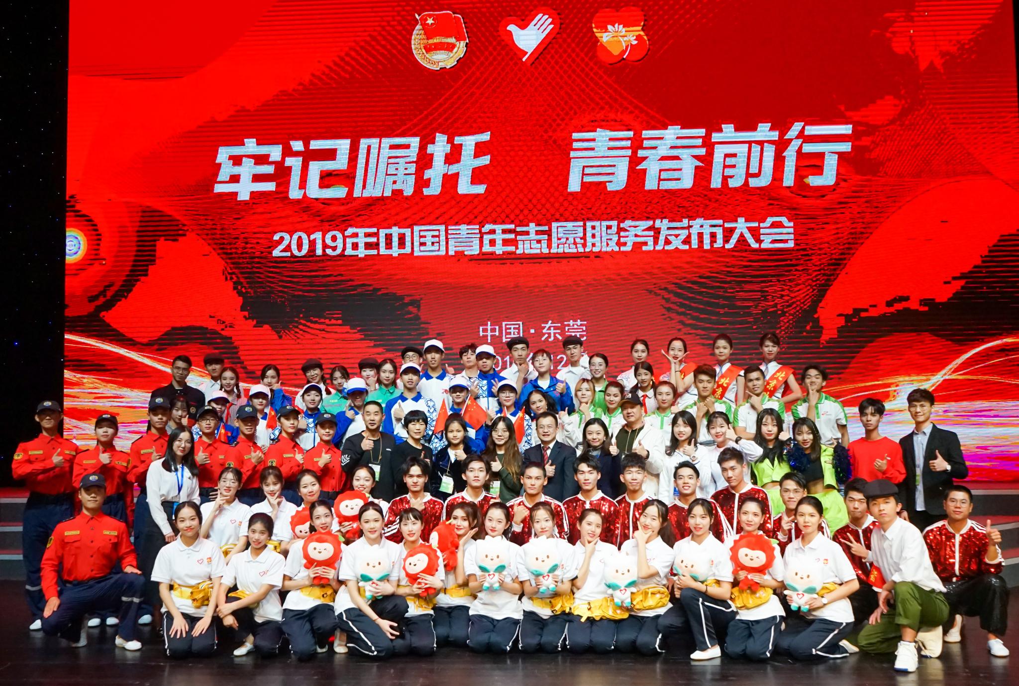 12月3日下午,由共青团中央、中央文明办、民政部、水利部、文旅部、国家卫健委、中国残联共同主办的2019年中国青年志愿服务发布大会在广东东莞玉兰大剧院举行。团中央书记处书记、中国青年志愿者协会会长奇巴图等出席本次活动。仲恺农业工程学院80名青年志愿者参与发布大会文艺演出。