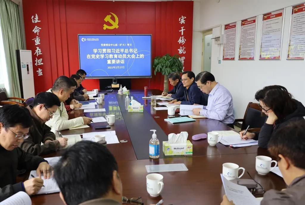 2月27日,广东轻工职业技术学院党委理论中心组集中学习习近平总书记在党史学习教育动员大会上重要讲话精神。