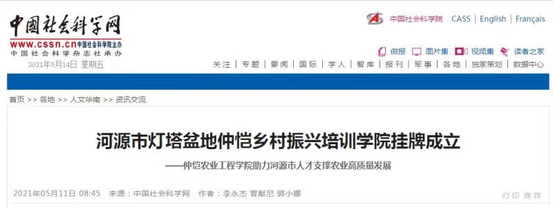 5月10日,河源市灯塔盆地仲恺乡村振兴培训学院、河源市灯塔盆地仲恺现代农业研究院揭牌仪式在河源市灯塔盆地农高区举行。仲恺农业工程学院院长程萍、副院长肖更生,河源市委副书记、组织部部长边立明,副市长、灯塔盆地农高区党工委书记赖小卫,东源县委书记、灯塔盆地农高区管委会主任孔德胜参加活动。