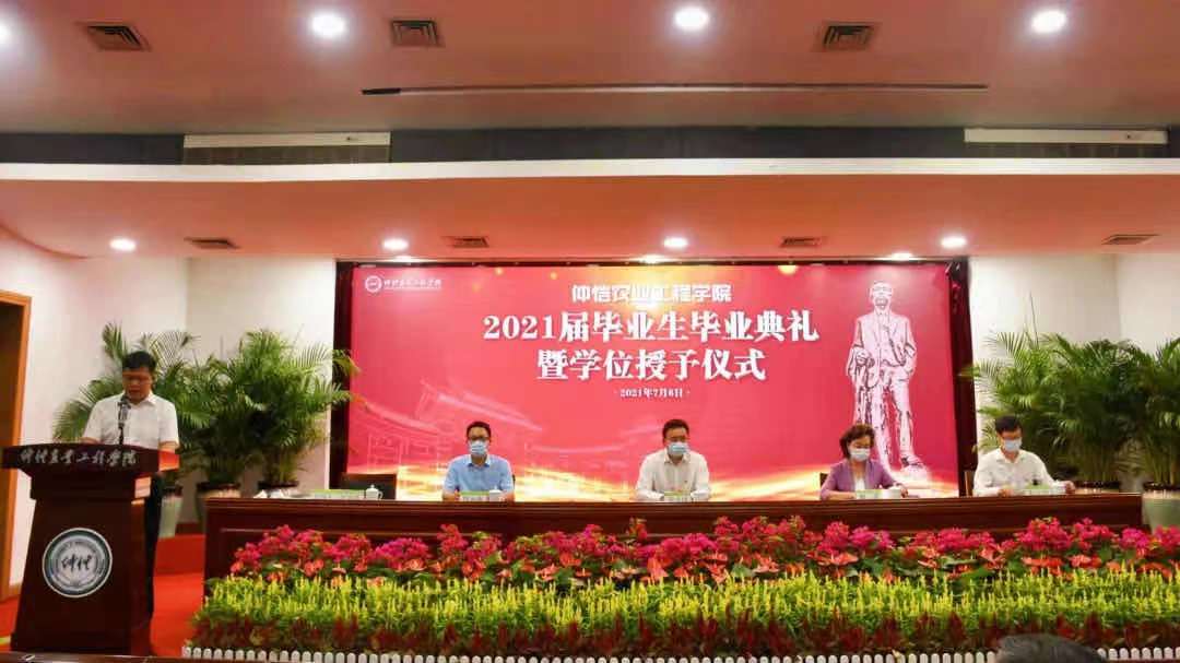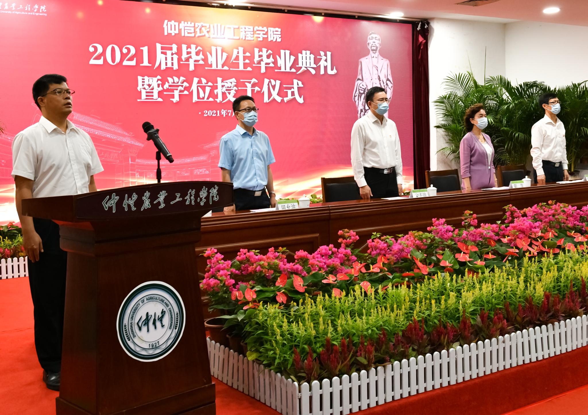志存高远,不负韶华;砥砺前行,筑梦远方。7月6日上午,仲恺农业工程学院2021届毕业生毕业典礼暨学位授予仪式在海珠校区学术报告厅举行。党委书记宋垚臻,校长程萍,党委副书记邱亚洪,副校长田允波、朱立学,各二级学院院长,相关职能部门主要负责人和各学院师生代表参加毕业典礼。典礼由邱亚洪主持。