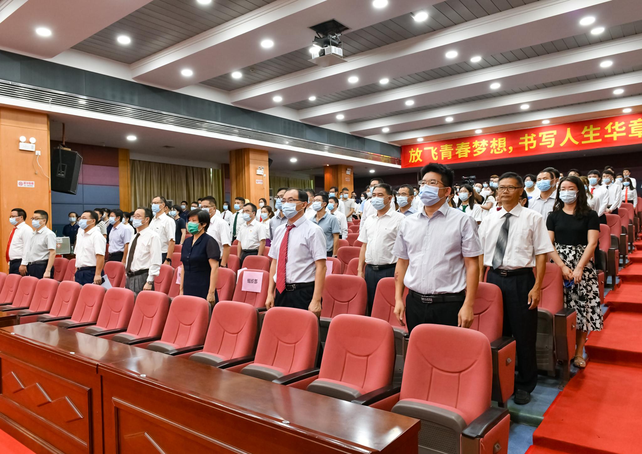 信息科学与技术学院刘磊安教授作为教师代表发言,勉励同学们:一要尽快转换“角色”,适应全新环境;二要诚实做人,踏实做事;三要懂得感恩,常回母校看看。