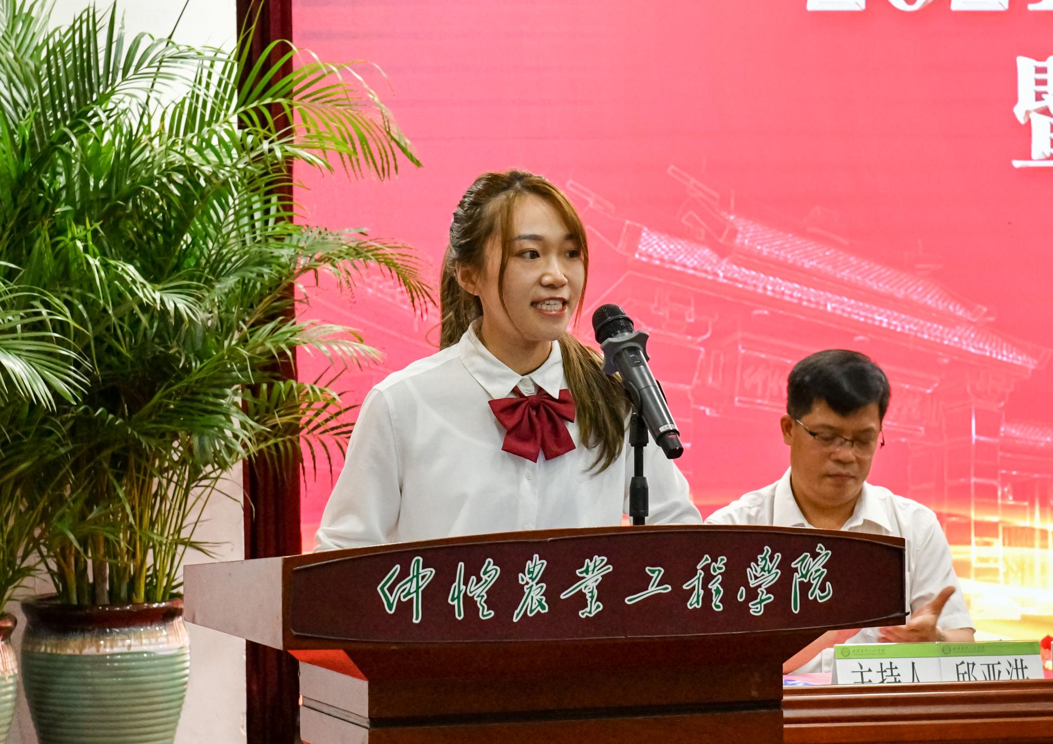 动物科技学院2018级兽医专业研究生相雪莲作为研究生毕业生代表发言。她表示作为一名党员,在建党100周年之际毕业倍感幸运,会带着母校的嘱托,坚守家国情怀,让青春在为祖国、为民族、为人民的不懈奋斗中绽放绚丽之花。