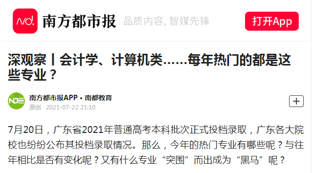 7月20日,广东省2021年普通高考本科批次正式投档录取,广东各大院校也纷纷公布其投档录取情况。那么,今年的热门专业有哪些呢?与往年相比是否有变化呢?又有什么专业“突围”而出成为“黑马”呢?