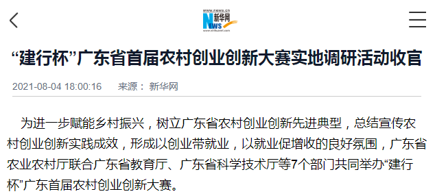 为进一步赋能乡村振兴,树立广东省农村创业创新先进典型,总结宣传农村创业创新实践成效,形成以创业带就业,以就业促增收的良好氛围,广东省农业农村厅联合广东省教育厅、广东省科学技术厅等7个部门共同举办“建行杯”广东首届农村创业创新大赛。