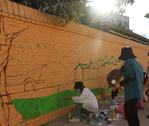 大学生充分用好自己的专长,开展墙绘活动。(来源:受访者供图)