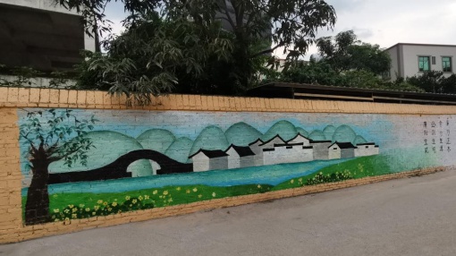 七月流火,队员们克服了烈日高温和户外蚊虫叮咬的现实困难,认真进行墙绘创作。从设计到构图再到上色,用4天时间完成了户外20多平方米的墙体彩绘。清新淳朴的乡村画风,吸引了不少村民驻足观看,并频频夸赞学生们的作品。