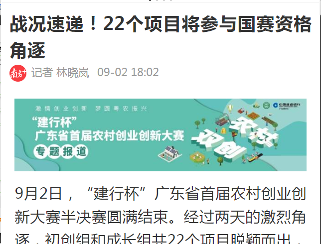据了解,大赛总决赛将于9月中旬举办。届时,进入总决赛的22个项目将角逐国赛参赛资格,初创组和成长组各选出2个项目,代表广东省参加第五届全国农村创业创新项目创意大赛,在全国舞台上展示广东农村创业创新风采。