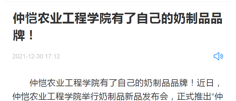 仲恺农业工程学院有了自己的奶制品品牌!近日,仲恺农业工程学院举行奶制品新品发布会,正式推出“仲浓”奶制品品牌。此次发布的“仲浓”奶制品主要包括仲浓纯牛奶、仲浓酸奶、仲浓高钙奶、仲浓学生奶四个产品。目前,前三种已经对外公开销售。