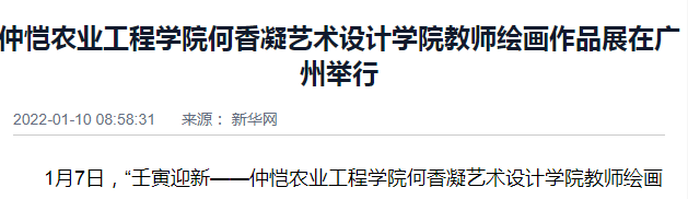 1月7日,“壬寅迎新——仲恺农业工程学院何香凝艺术设计学院教师绘画作品展”在广州拉开帷幕,展期从1月7日至3月18日。