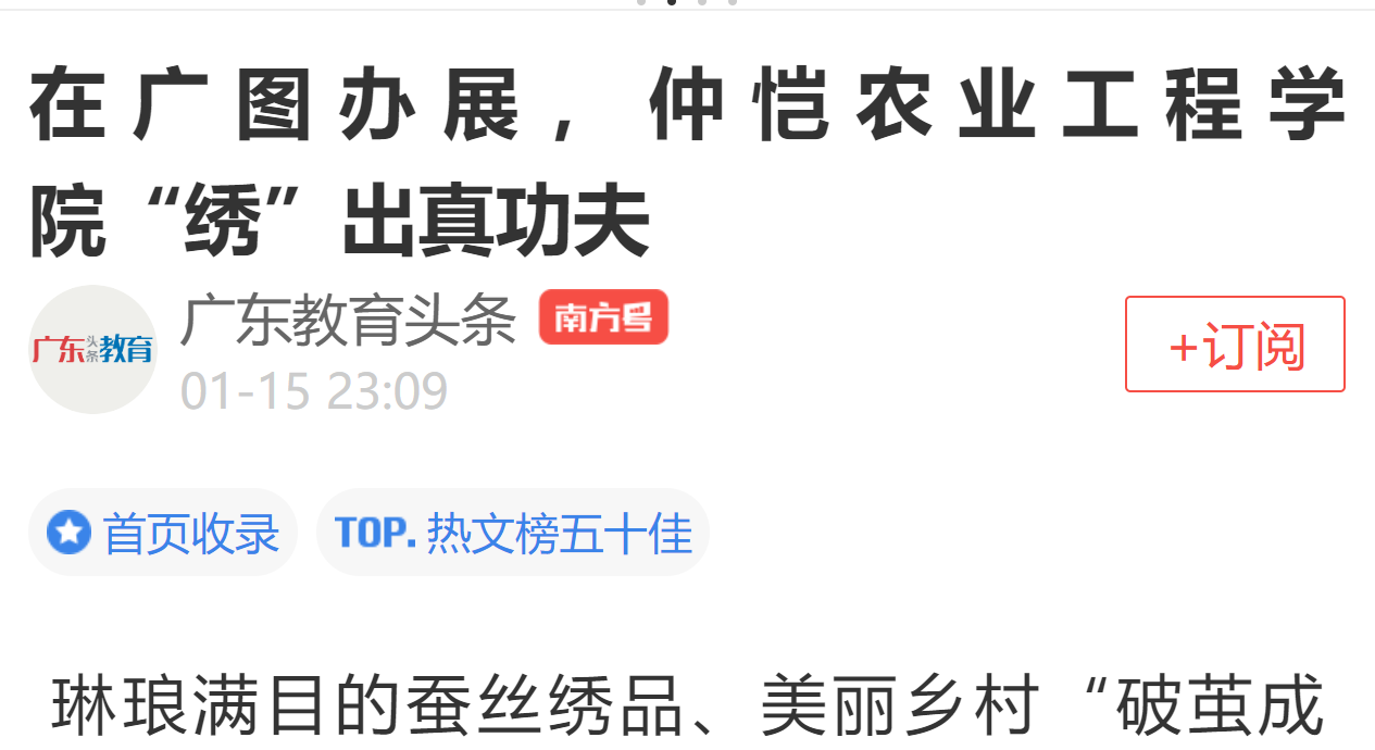 “去年初,学校成立了蚕丝文化创新研究院,旨在传承和推广学校蚕丝文化,也是弘扬和传承优秀传统文化。”仲恺人文与社会科学学院副院长、蚕丝文化创新研究院执行院长颜琳介绍道,该研究院是学校7个校级公共研究平台之一,发挥科学研究、社会服务和优秀传统文化传承与推广等功能,并与何香凝艺术设计学院共同成立粤绣研究工作室,携手学校师生开展粤绣非遗课程和粤绣研究,“未来或在校内开展粤绣相关的通识选修课”。