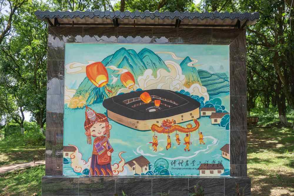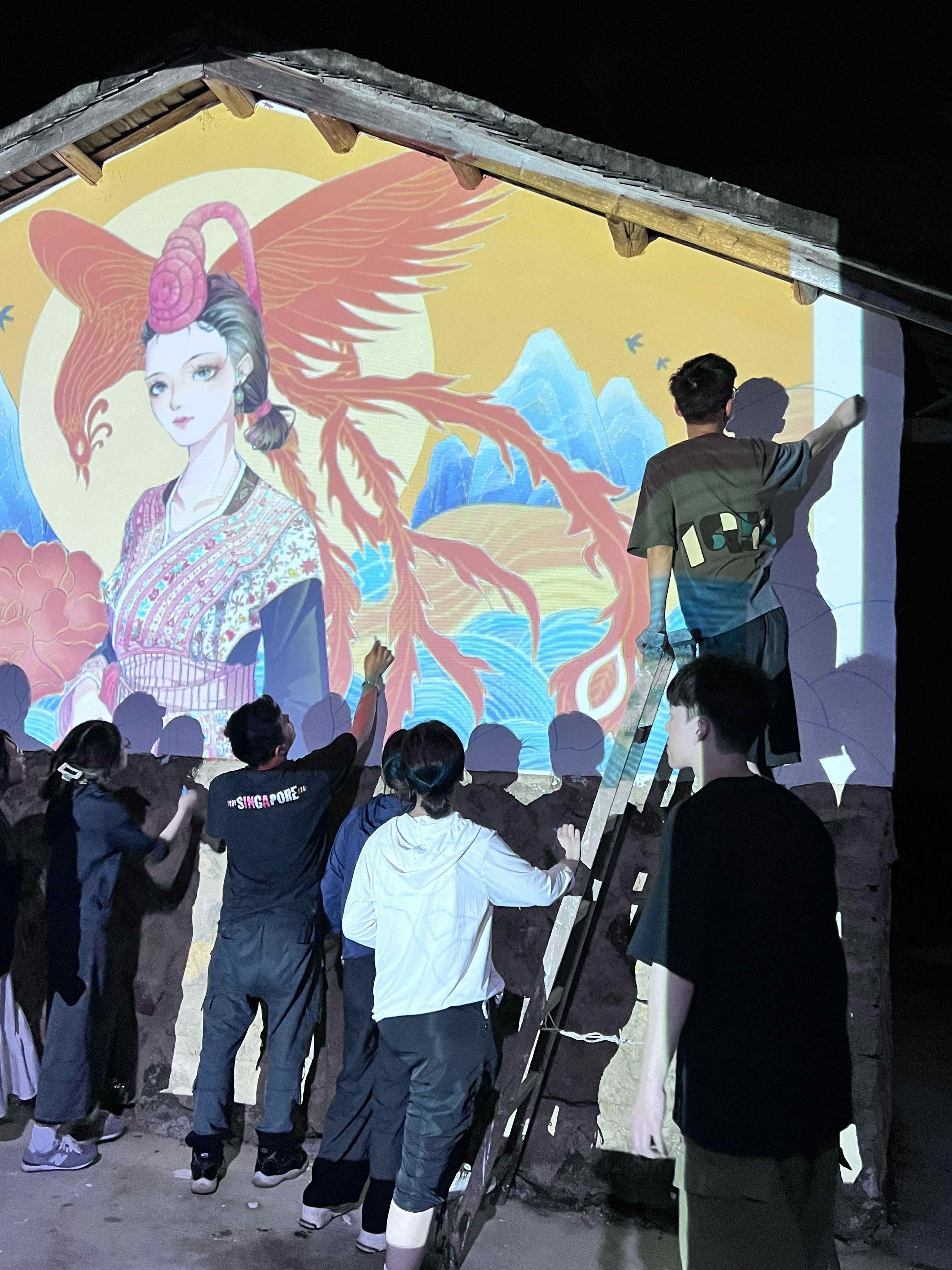 历经几日辛劳,作为宣传乡村文化的有效载体,承载着蓝屋村悠久历史的畲族文化墙绘工作终于完成,原先单调的墙面瞬间灵动起来。仲恺农业工程学院师生携手装点美丽乡村,打造乡村新“打卡点”,不仅美化了蓝屋村的村容村貌,更让来往游客直观感受到村内畲族文化的迷人魅力,开启当地美丽乡村崭新画卷。“饶洋镇大学生社会实践基地”也将为仲恺学子提供良好的社会实践平台,为深入、持久、有效开展好社会实践活动提供坚实保障。