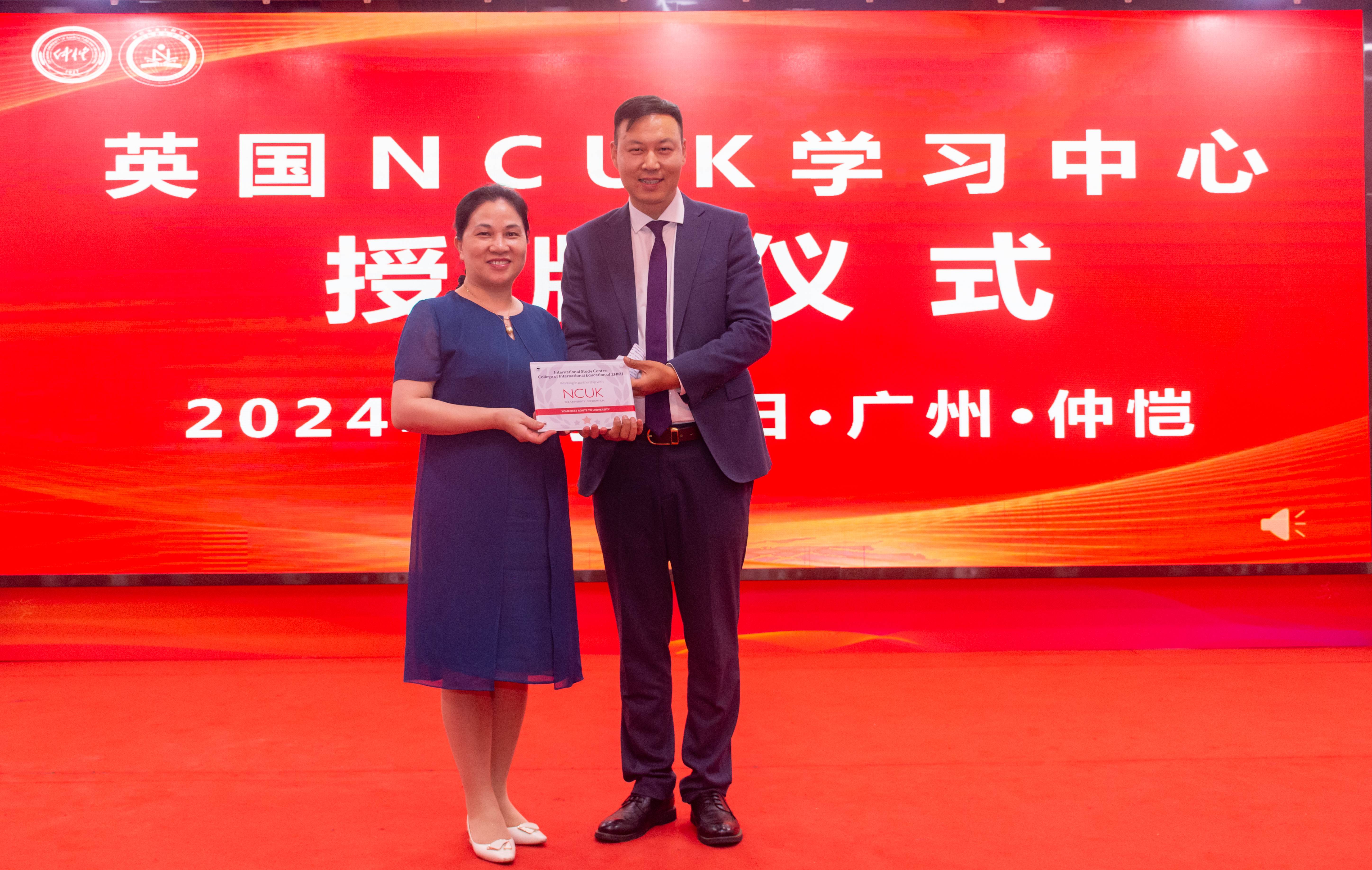 仲恺农业工程学院国际教育学院副院长(主持工作)梅翠平向与会嘉宾介绍了2024年学院开设的三大计划外招生国际本科项目——NCUK世界名校1+3国际本科、新加坡1+2国际本科、美国TOP35名校直通车,并宣布2024年仲恺国际教育学院计划外招生1+3国际本科项目正式启动和面向社会招生。发布会现场,冯江华将“英国NCUK仲恺学习中心”牌匾授予仲恺农业工程学院国际教育学院。