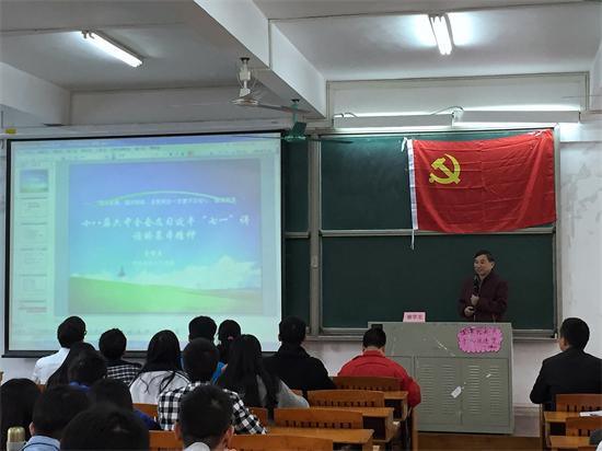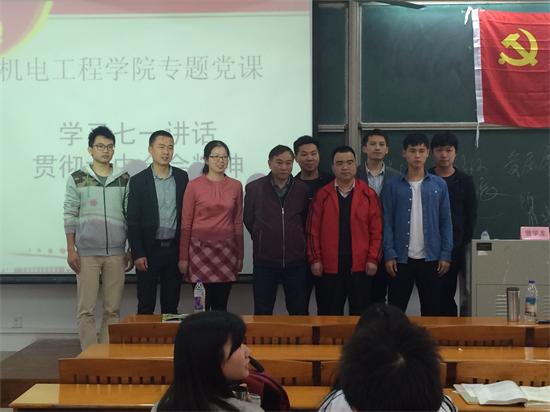 为深入推进“两学一做”学习教育,提高学生党员的党性修养和政治素养,12月8日,机电工程学院邀请人文社科原系主任曾学龙教授在白云校区杨钊杨勋楼207作题为《学习七一讲话,贯彻六中全会精神》的专题党课。该院党总支副书记何宝国、辅导员、全体学生党员、积极分子参加。党课由何宝国主持。