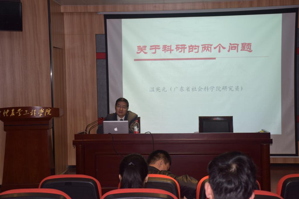 11月11日下午,广东省社会科学院原副院长温宪元研究员应我校科技处和马克思主义学院的邀请莅临我校海珠校区英东楼111课室,为教师与研究生作了一场题为《关于科研的两个问题:科研是什么?如何做好自己的科研?》的学术报告。报告会由我校科技处处长周新华教授主持。
