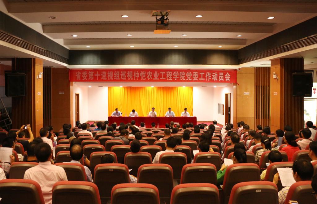 按照省委巡视工作统一部署,从10月25日起到12月下旬,省委第十巡视组对仲恺农业工程学院党委进行巡视监督。25日上午,省委第十巡视组巡视仲恺农业工程学院党委动员会在我校学术报告厅召开。省委第十巡视组组长陈韩晓作巡视工作动员讲话,省委巡视办副主任庞廉就配合做好巡视工作提出要求,学校校长、党委副书记骆少明作表态发言,省委第十巡视组全体成员出席了会议。动员会由骆少明主持。