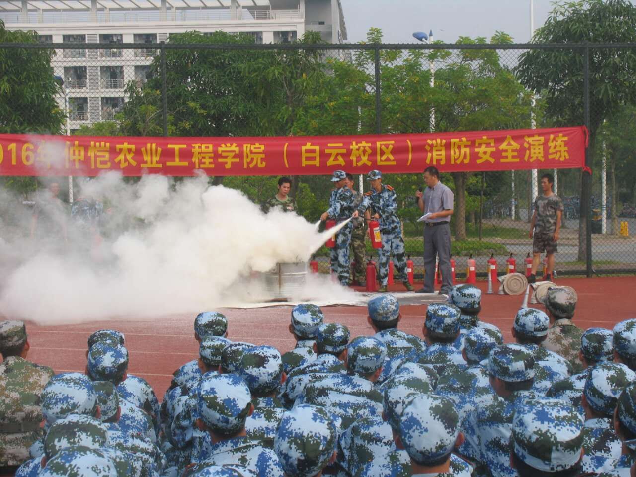 为保证学校消防安全,提高师生消防意识,我校联合属地消防中队,在海珠和白云两校区分别举行消防演练。
