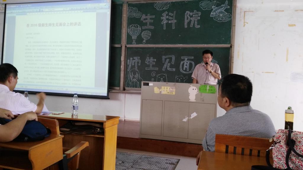 9月12日下午,生命科学学院师生见面会在杨钊杨勋楼510室召开,生命科学学院2016级新生到场,该院党总支书记刘伟坚、院长梁红、副院长梁雪莲等全体教职工参加了本次会议。