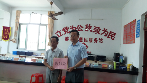 随后,骆校长向贫困户送上中秋慰问金,并在当地镇、村干部的陪同下,探访了当地的三户贫困户。