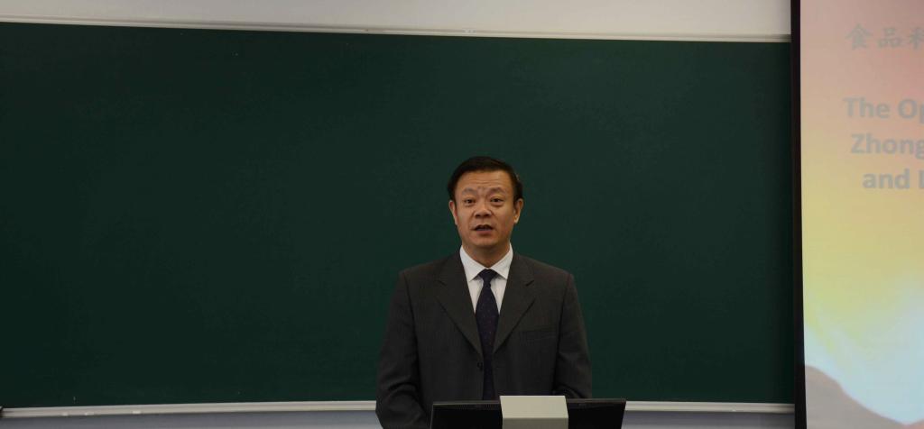 在主持人介绍完到场领导和嘉宾之后,校长骆少明上台致词。在致辞中,校长提到该项目是我校与新西兰林肯大学在食品工程专业强强合作,以培养国际化优质人才为目标的第一个重点项目,且是学校首个中外合作项目。强调了该项目的重要性,并表示学校对其高度重视,在人才培养方案和课程安排上都做了新的尝试。同时,骆校长也在演讲中对学生提出了两点期许,一是希望学生们每天定一个目标并努力执行,二是希望学生们懂得感恩,要常与父母联系。